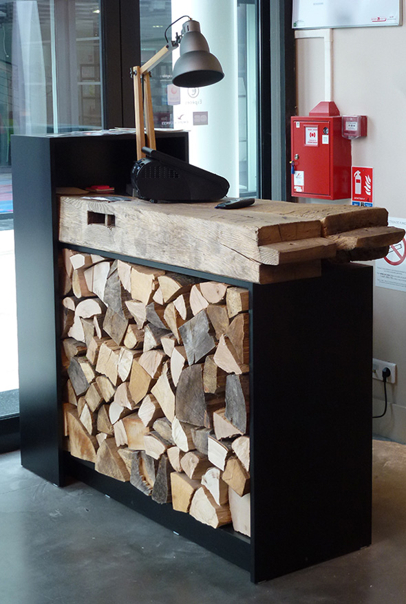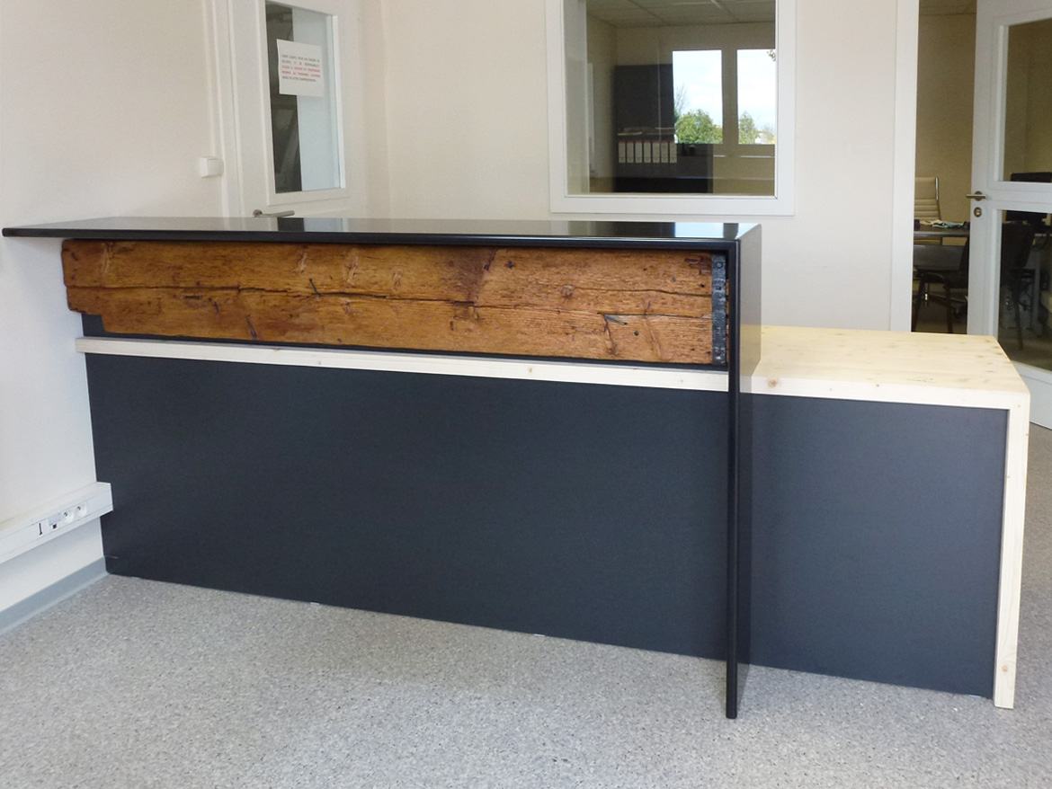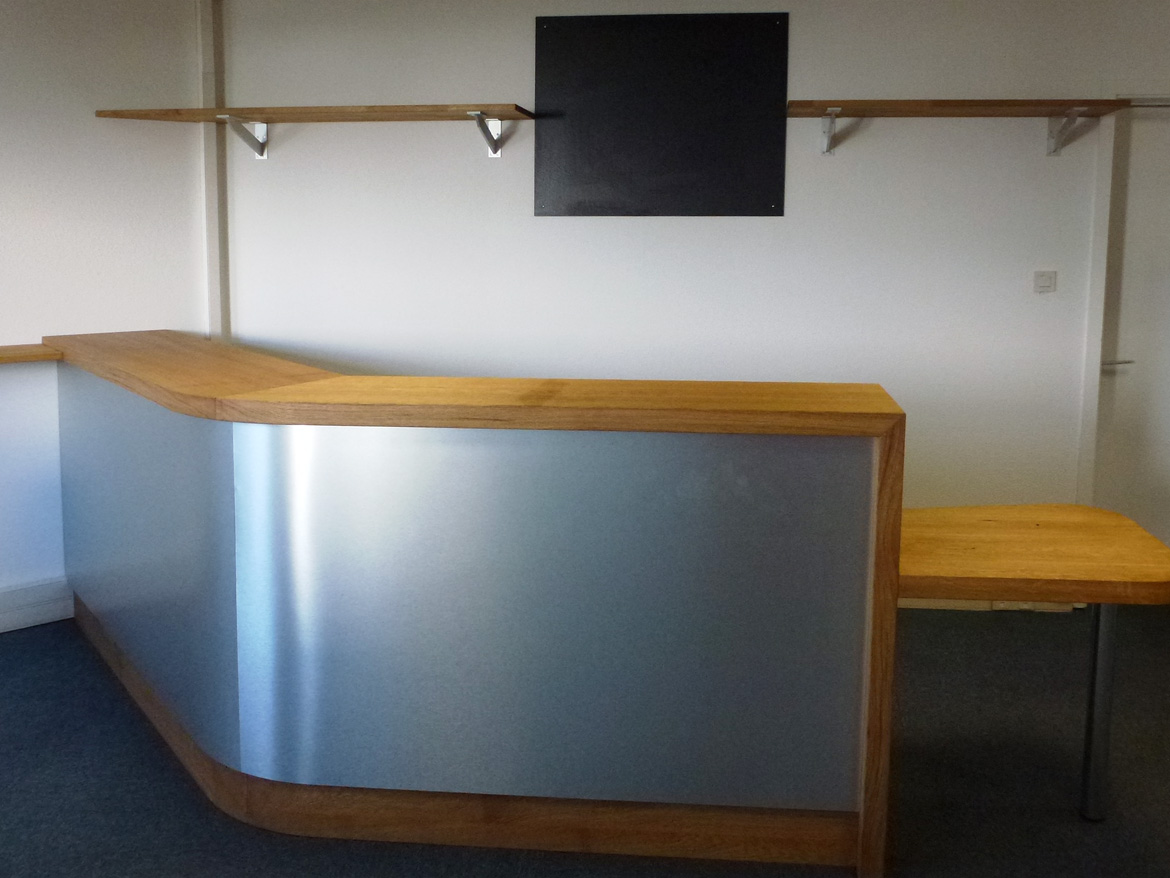 Comptoir d'accueil en chêne et inox