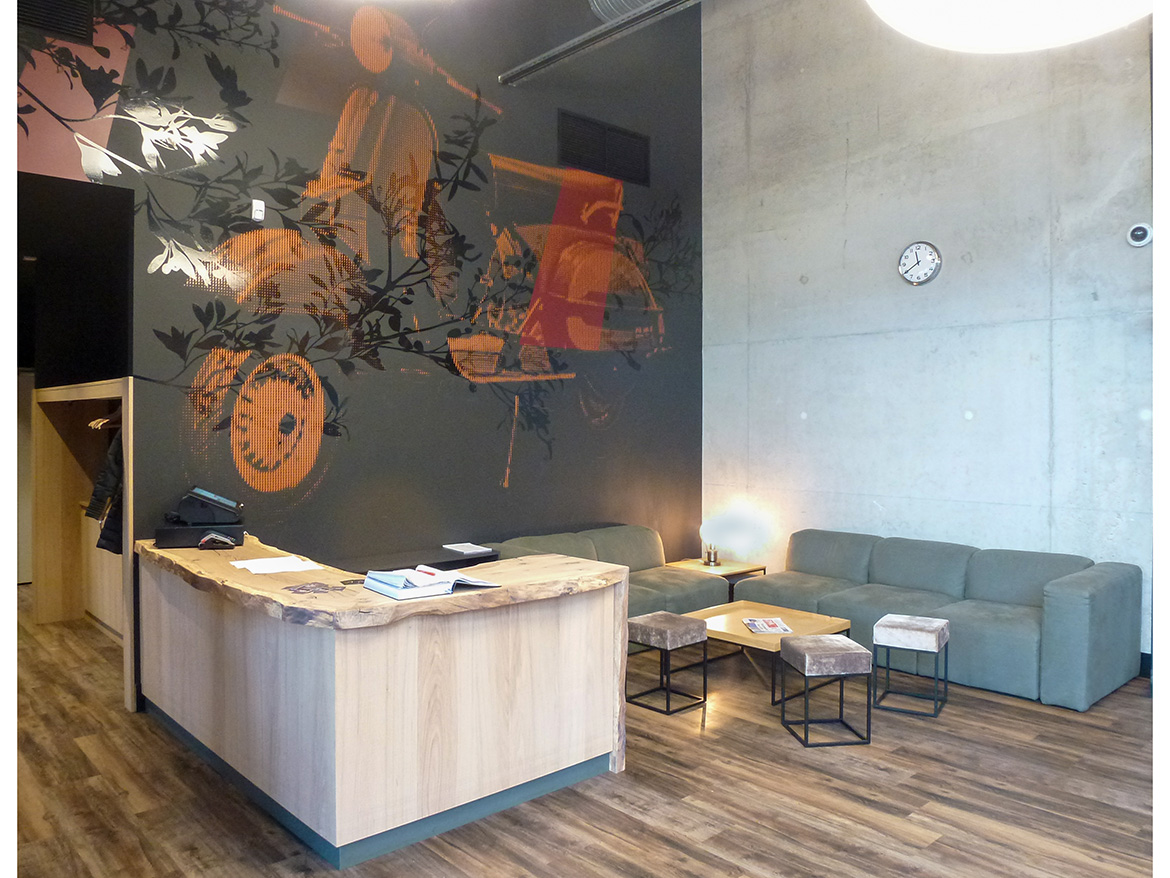 Détail d'un comptoir d'accueil